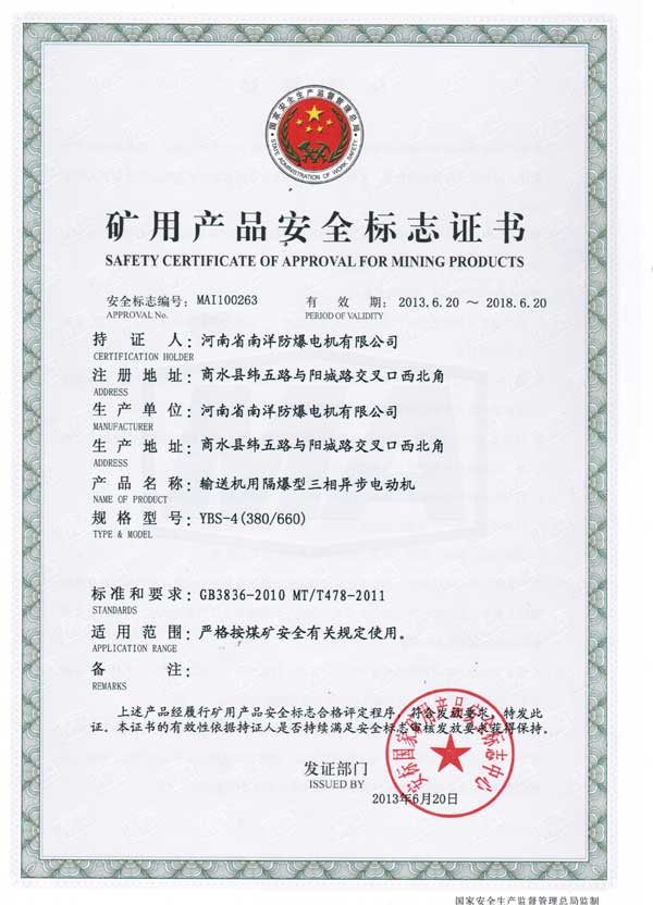 輸送機(jī)防爆電機(jī)主要用于煤礦井下的皮帶輸送機(jī),刮板輸送機(jī)等配套用電機(jī),機(jī)座由鋼板焊接成形,風(fēng)罩,接線盒,絕緣結(jié)構(gòu)采取加強(qiáng)措施,防止碎石墜落砸傷電機(jī),已適應(yīng)煤礦井下的復(fù)雜環(huán)境。防爆性能符合GB3836.1《爆炸性環(huán)境用防爆電氣設(shè)備 通用要求》和GB3836.2《爆炸性環(huán)境用防爆電氣設(shè)備隔爆性電氣設(shè)備d》的規(guī)定,適用于煤礦井下具有可燃性氣體或煤塵與空氣形成爆炸性氣體環(huán)境的場(chǎng)所,防爆標(biāo)志為ExdI Mb。