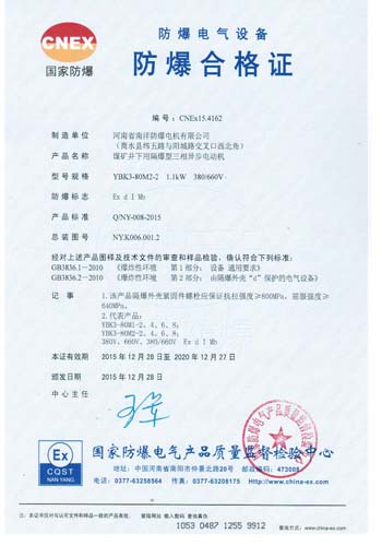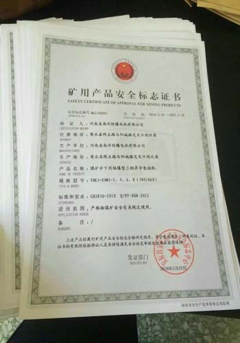隨著國家對(duì)煤礦開采行業(yè)的規(guī)范要求加大,一部分落后電機(jī)逐漸被市場(chǎng)淘汰,根據(jù)國家要求和市場(chǎng)需求,經(jīng)過相關(guān)職能部門嚴(yán)格把關(guān),我公司經(jīng)過考核,順利取得