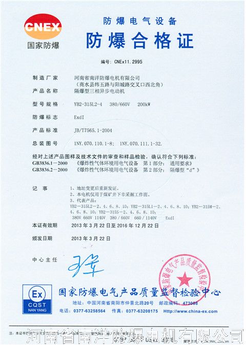 第三,防爆電機(jī)證件。防爆電機(jī)一般都是必要三證的,這個證件包含:煤安證、防爆證等國度認(rèn)證的證件。有這些證件的企業(yè)您就可以放心的購買防爆電機(jī)設(shè)備。